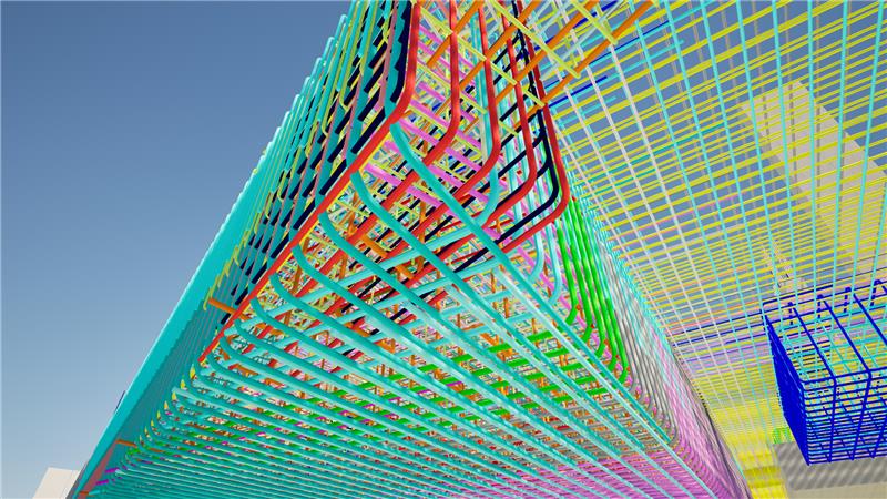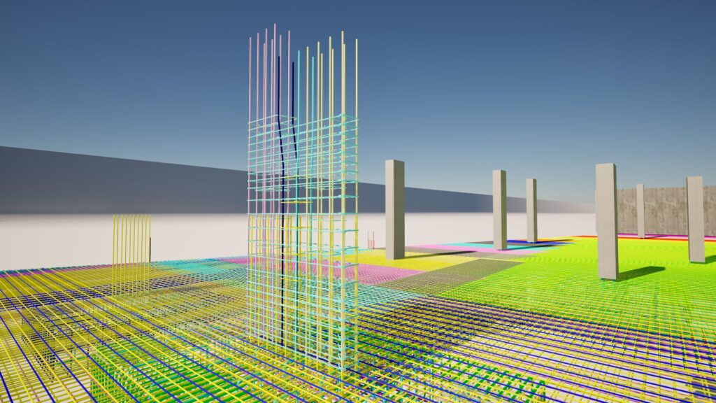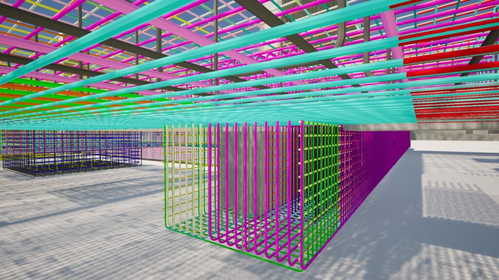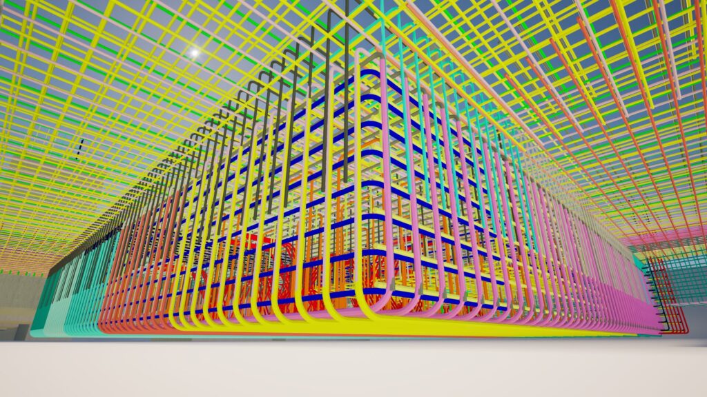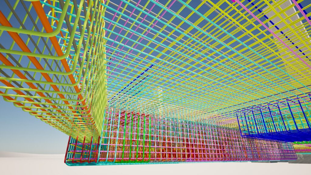 - In several locations, paired columns (pilons) were introduced where two beams converge above, creating concentrated load zones that required careful reinforcement detailing.