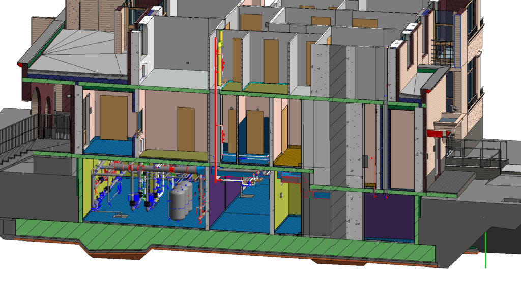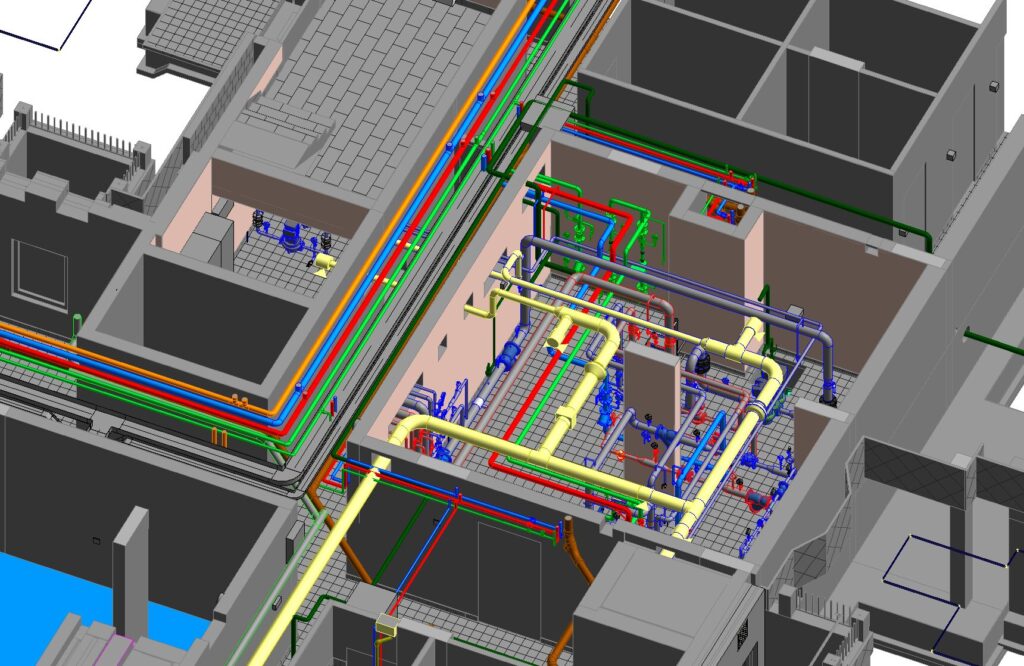 A strong focus was placed on clash detection, spatial coordination, and system integration, particularly within dense technical areas such as basements and service zones. By leveraging BIM as a central coordination tool, we were able to minimize design conflicts early and support smoother downstream workflows.