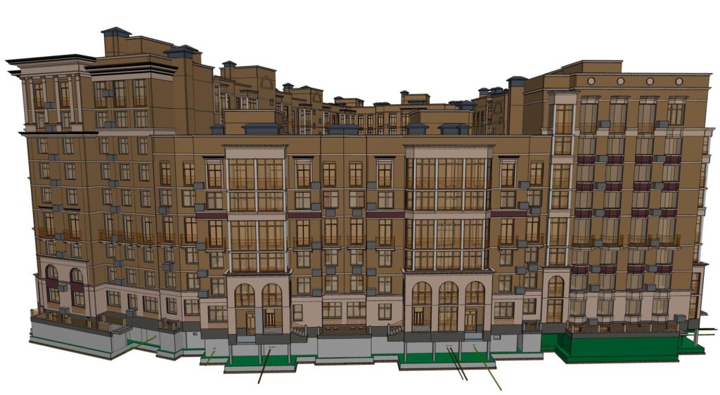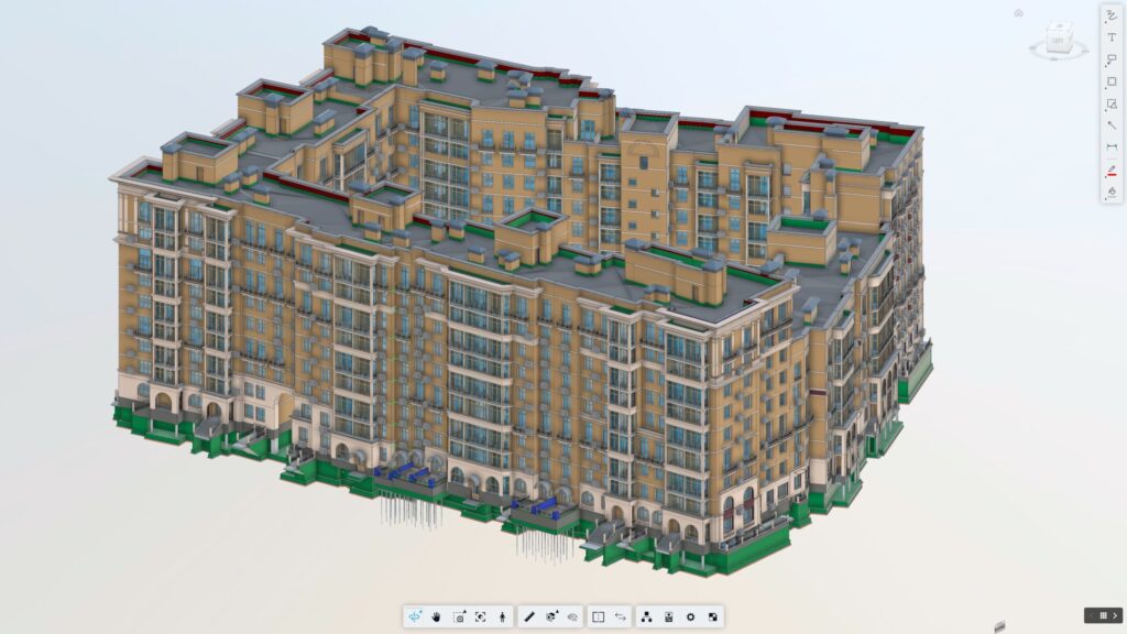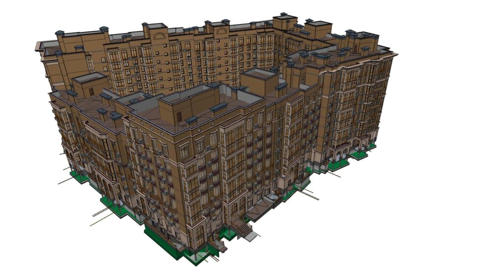 A large-scale residential development with a total gross floor area of approximately 70,000 m². The project represents a highly complex, multi-disciplinary scope, integrating architectural, structural, and MEP systems within a single coordinated BIM environment.